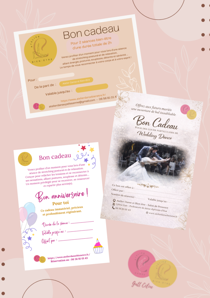 Si vous souhaitez offrir un bon cadeau, il vous suffit de la contacter au 06 56 81 01 43 ou atelierdanse.pelissanne@gmail.com